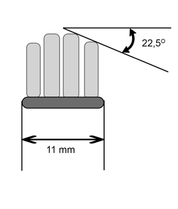 1. The shape of the brush is designed to support brushing with the Bass method. The bristles are cut in a slide from the center line to the side, which helps to clean the teeth, placing it at an angle of 45 degrees to the surface of the tooth.